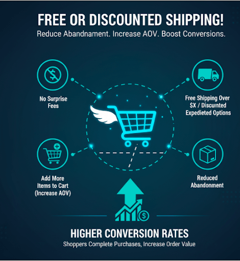 | Free / Discounted Shipping | Price-sensitive customers | Free shipping over AOV threshold, expedited upgrades | Reduced cart abandonment |