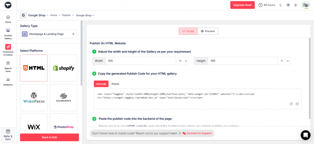 As described earlier in this blog, brands can use Taggbox to have a smooth embed process. Taggbox can help you do so easily in two major steps.