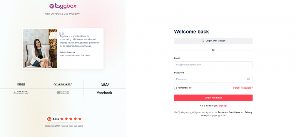 - Go to Taggbox, log in, or create your free account.