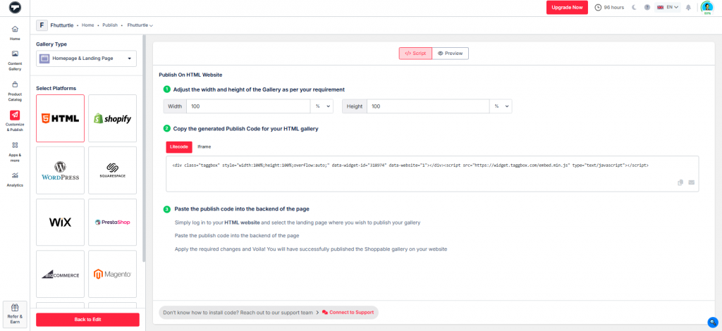 7. When you’re happy with the preview, select your CMS platform & click on Generate Code.