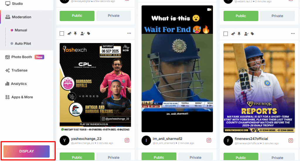 - Once your wall is ready after the moderation then click on the Display button at the bottom left side