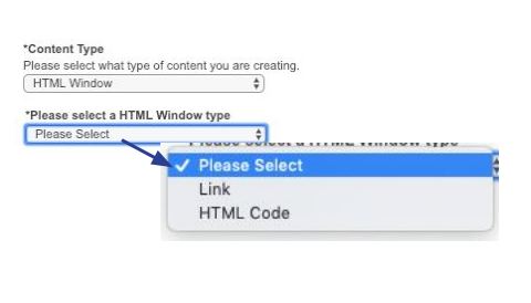Wählen Sie in den Inhaltsoptionen HTML-Fenster