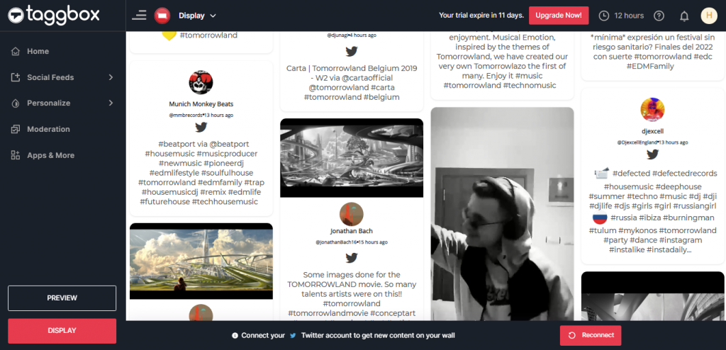 Alles dank der Social-Media-Aggregator und virtuelle Event-Engagement-Tools wie Taggbox Display, das die Sammlung und Kuratierung von Social Media Feeds (über Handles, Hashtags, Erwähnungen usw.) in einem einzigen Feed namens Social Media Wall, auch bekannt als Social Wall.