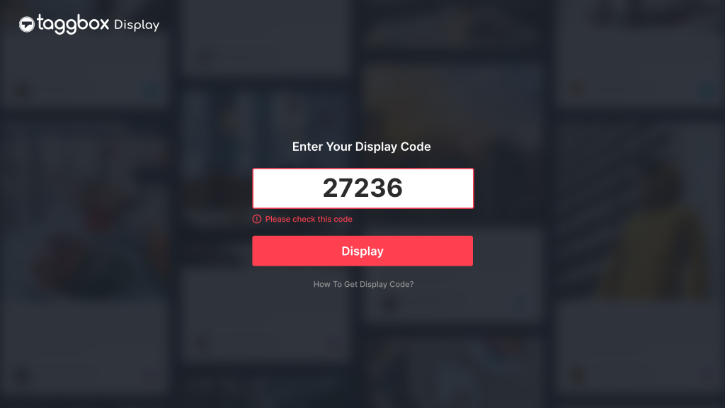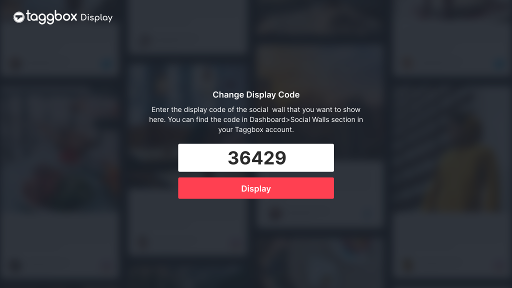 Changer de code– Il vous permet d’afficher un autre mur social sur l’écran du téléviseur. Il vous suffit de créer un nouveau mur social et de générer son code d’affichage à partir de Taggbox Display et de le copier.