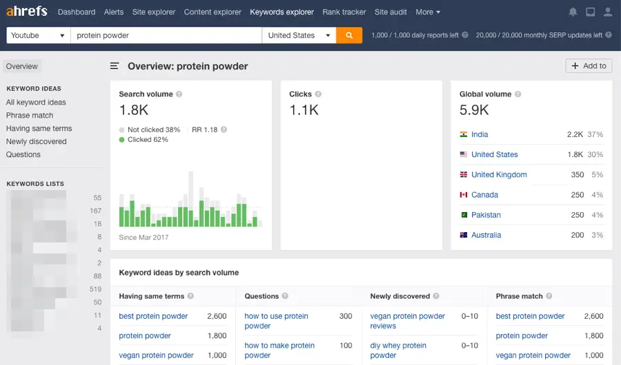 Outil de mots-clés YouTube Ahrefs