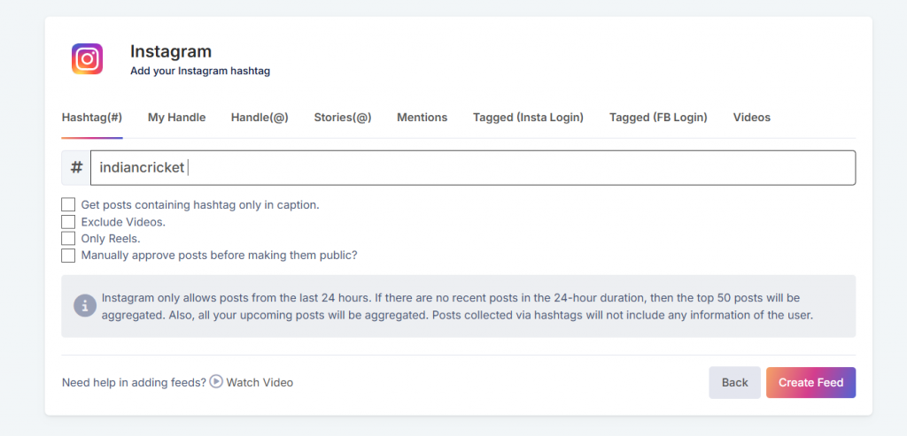 - Verrai reindirizzato alla dashboard. Ora crea un muro e seleziona il canale social preferito per aggregare i contenuti.