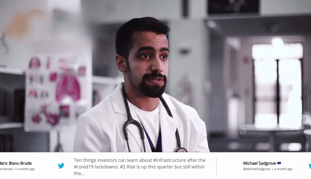 同様に、Twitter フィードをスクロールすると、最新の Twitter 投稿に対する視聴者のエンゲージメントが高まり、視聴者が画面に表示されている内容を読むように促されます。